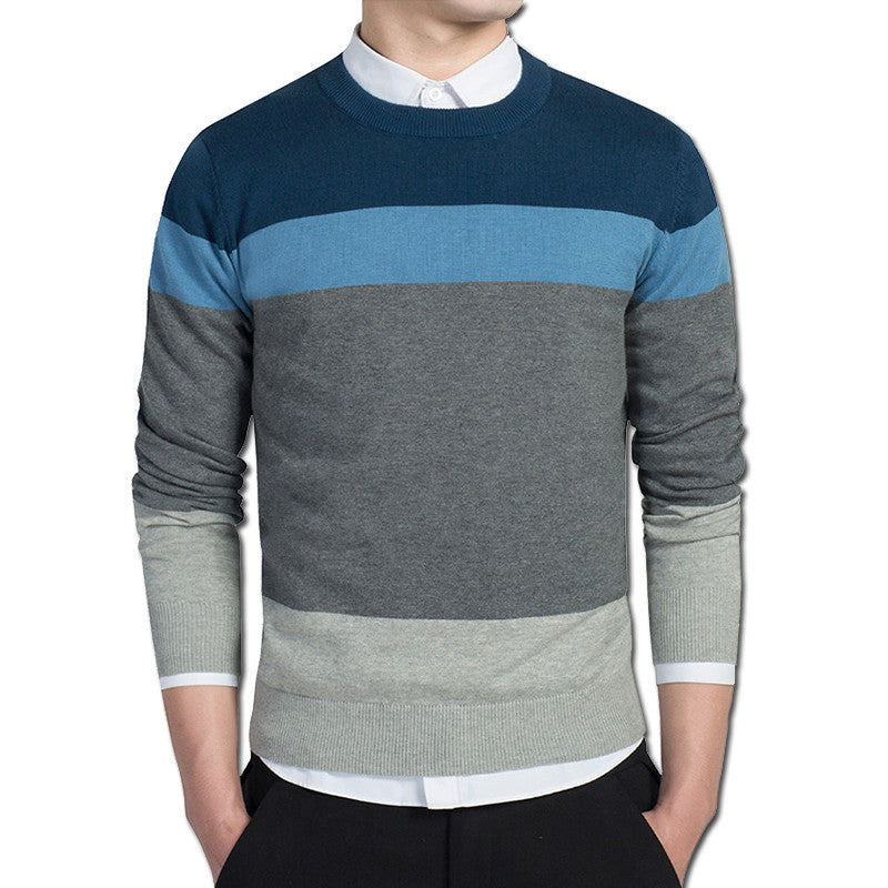 Men Stripped Sweaters and Pullovers Men's Casual Slim Fit Long Sleeved O Neck Knitted Sweaters Pullovers Hombre Men SM6