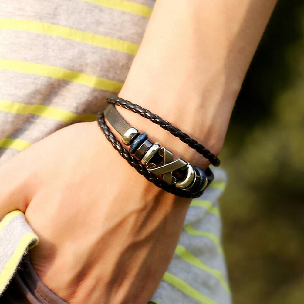 Men's Bracelets Bohemian Leather Jewelry Rhinestone Crystal H made Metal Beaded Mens Bracelets SM6