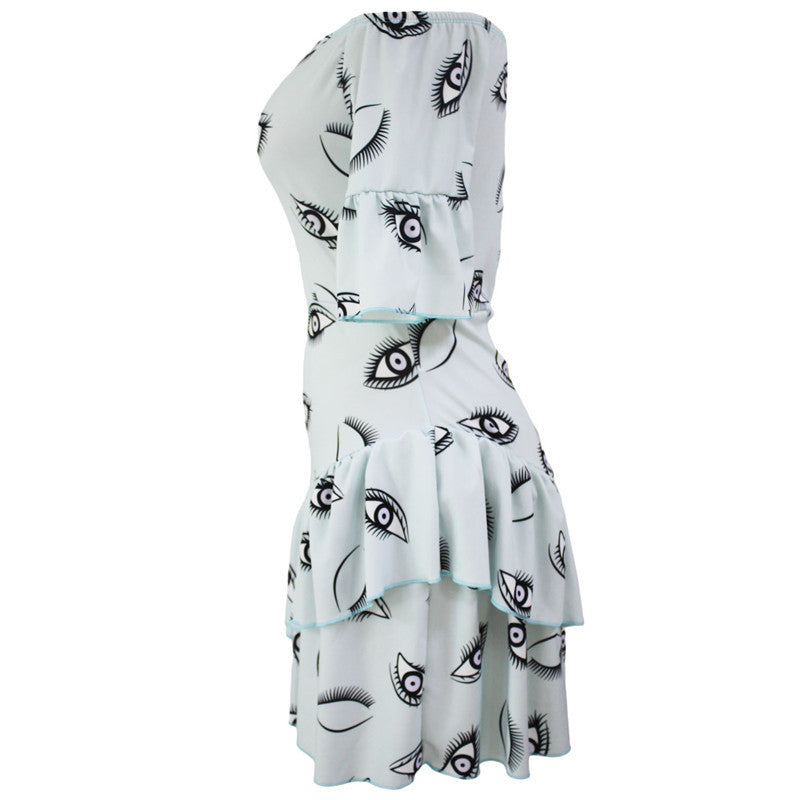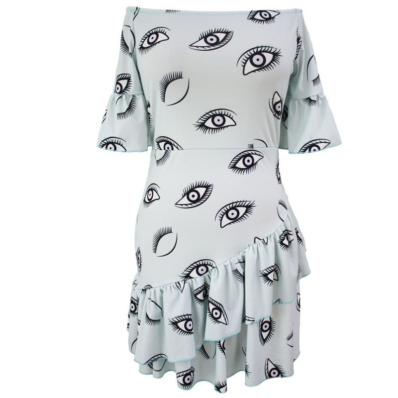 Cascading Ruffles Off Shoulder Mini Dress Half-Sleeve Elegant Dress Slimming Skater Dress SM6