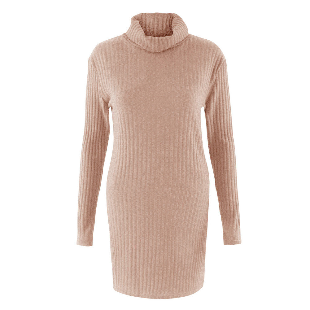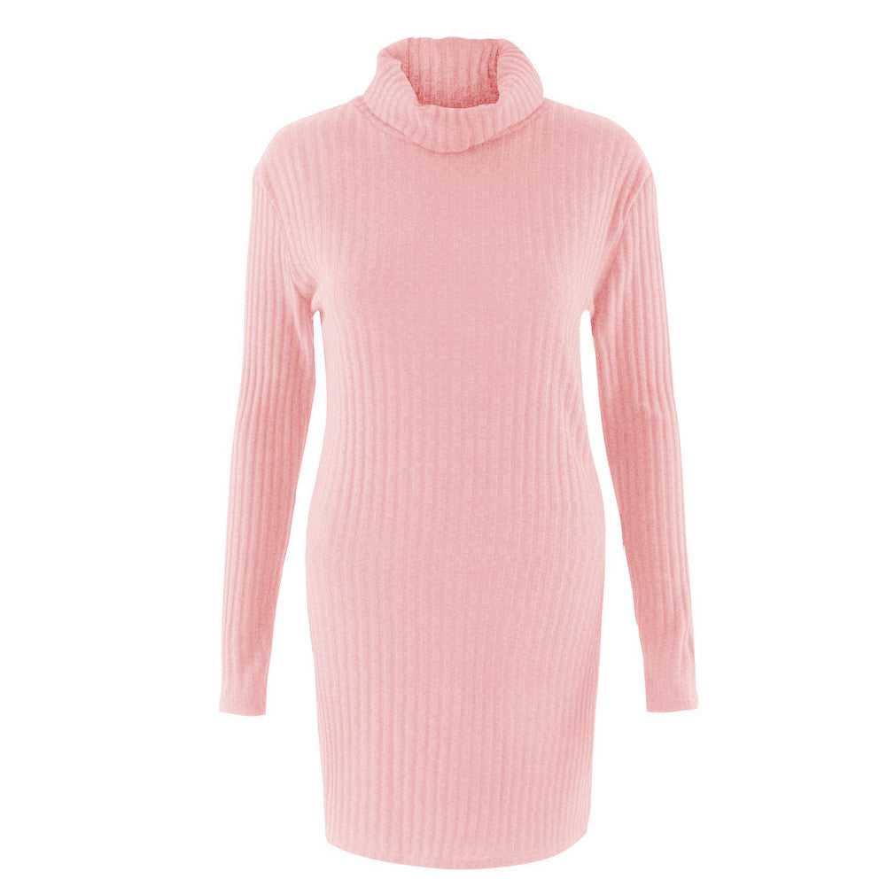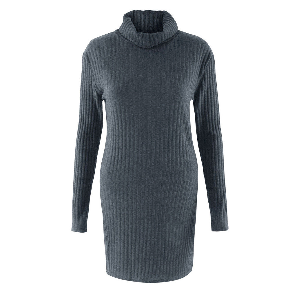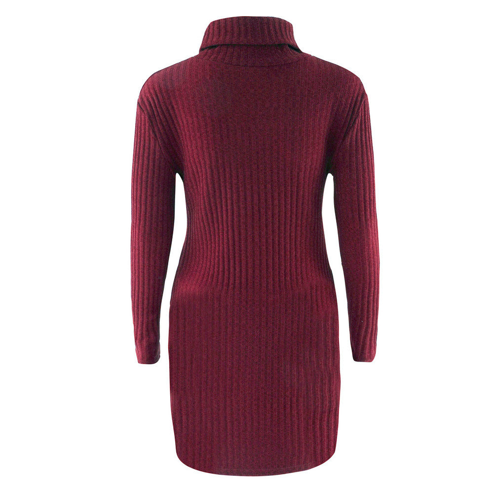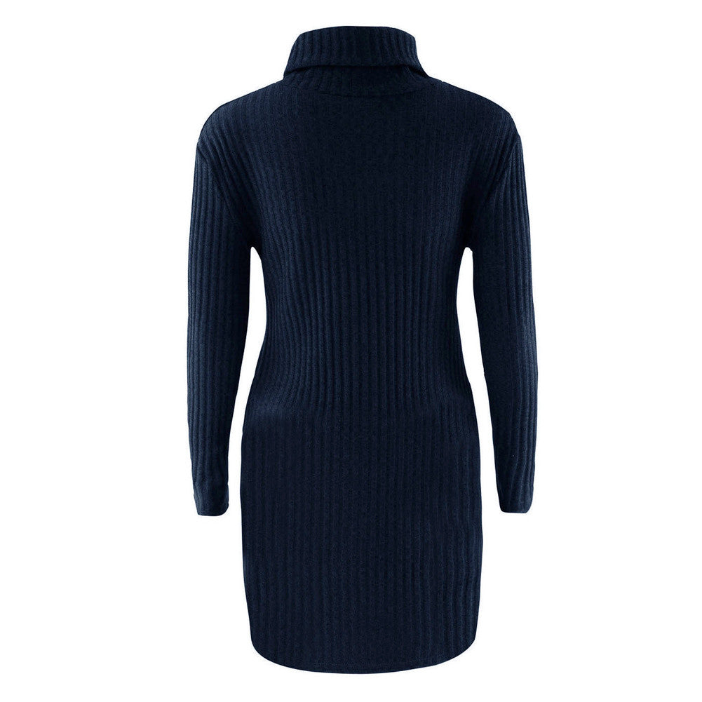 Plus Size Women Knitted Dress Solid Turtleneck Sweater Dress Long Sleeve Casual Party Mini Dress Long Ladies Pullover SM6