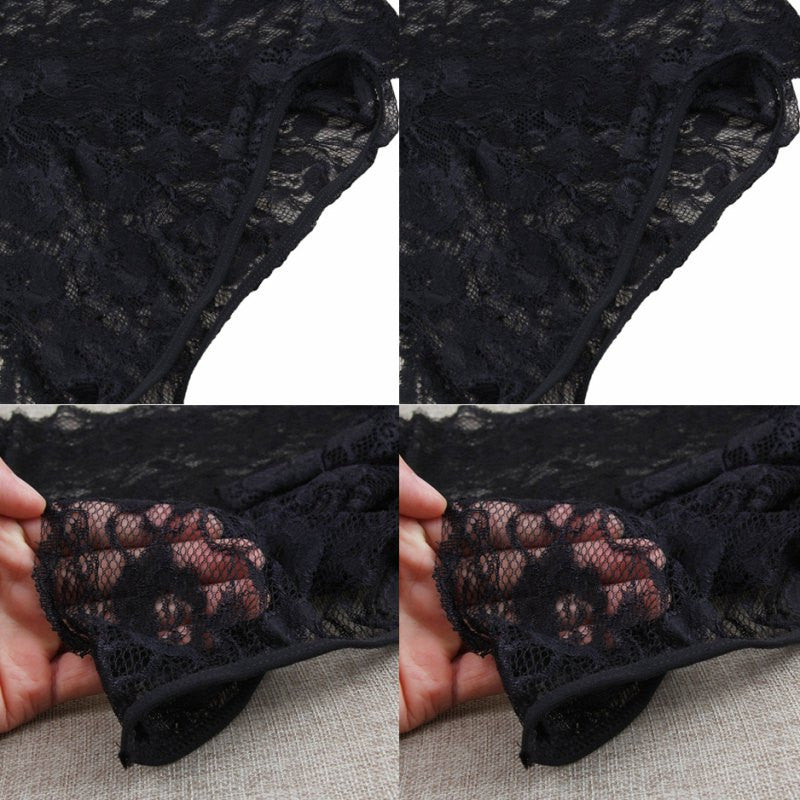 Sexy Women's Black Thin Lace Bra Tops Panty Underwear Sets Breathable Hollow Out Crop Tops SM6