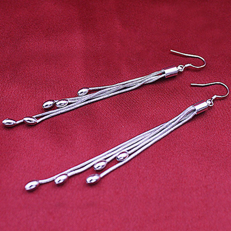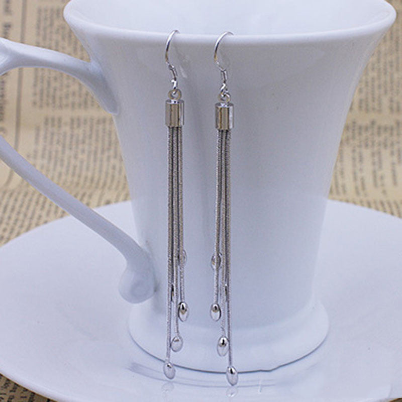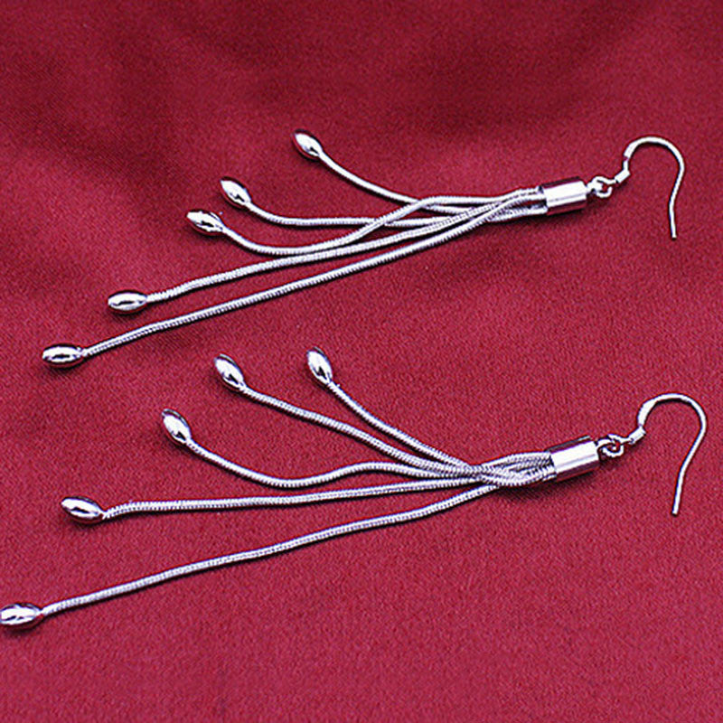 Sterling Silver Drops Long Tassels Hook Dangle Earrings Women Silver Plated Drops Dangle Earrings SM6