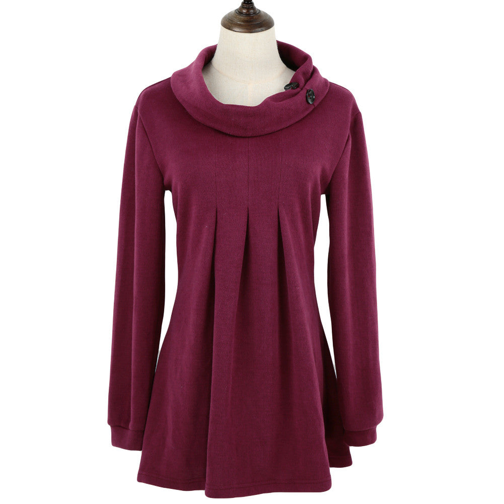 Turtleneck Sweater Women Long Sleeve Cashmere Pullover Lady Sweaters Pleated Button Knit Warm Tops Maglioni Donna SM6
