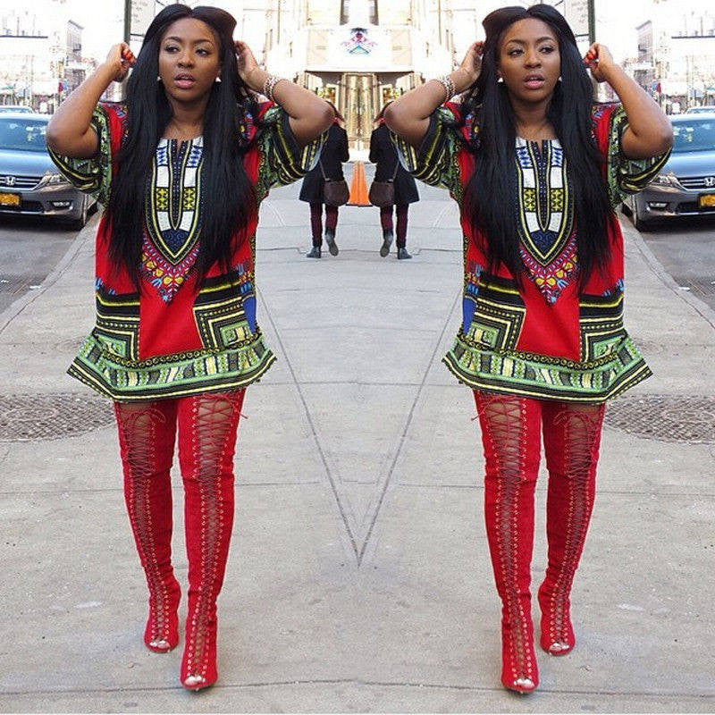Women African Festival Dashiki Shirt Kaftan Boho Hippe Gypsy Festival Tops Party Dress LY3 SM6
