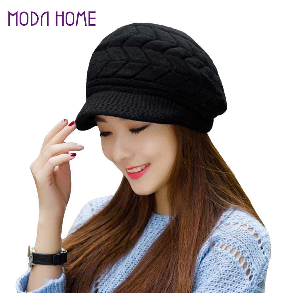 Women Beret Hat Crochet Slouch Baggy Warm Hats Women Knitted Cap Headwear SM6