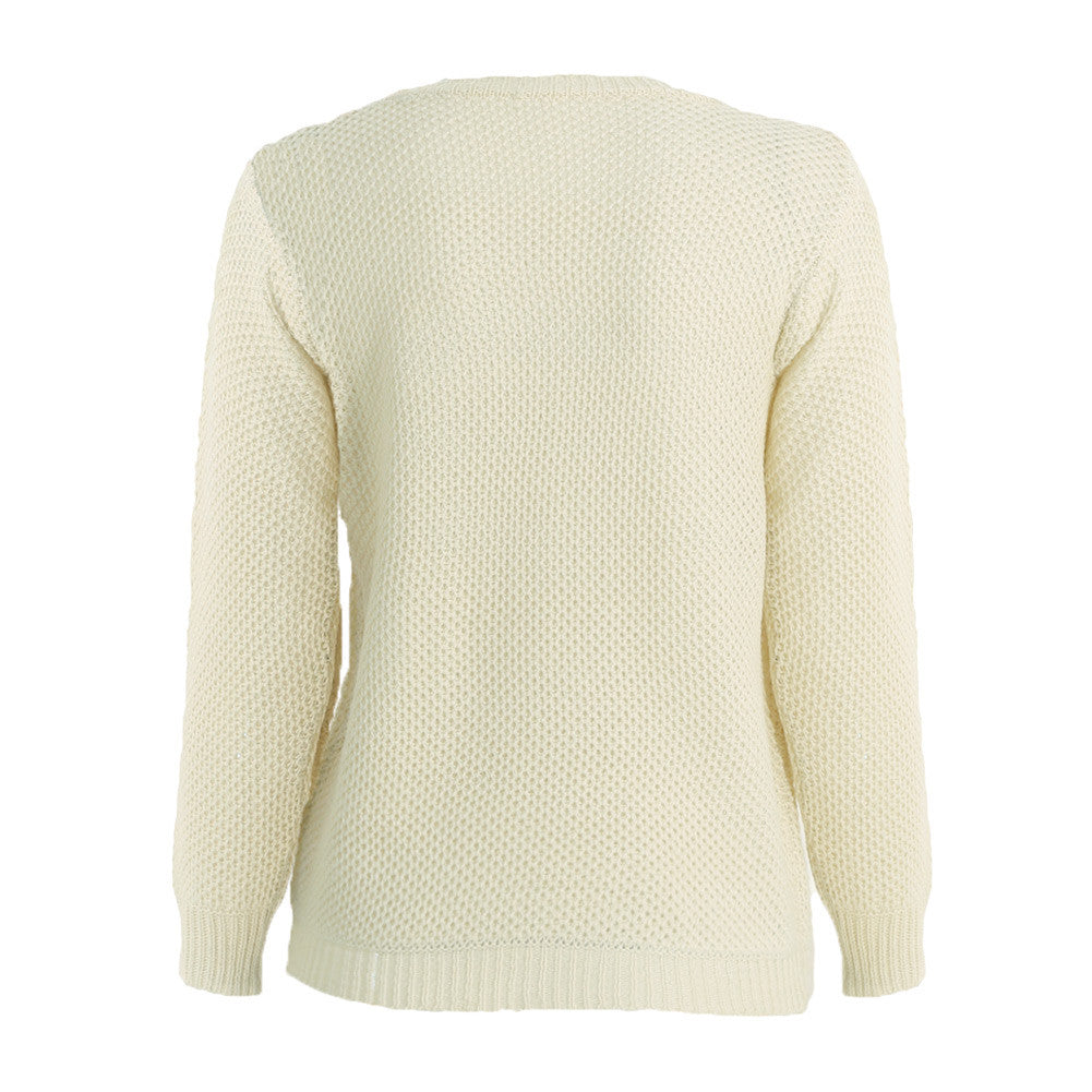 Women Knitted Jumper Solid Ribbed Design O Neck Tricot Woman Casual Sweater Beige Pull Sweter Mujer SM6