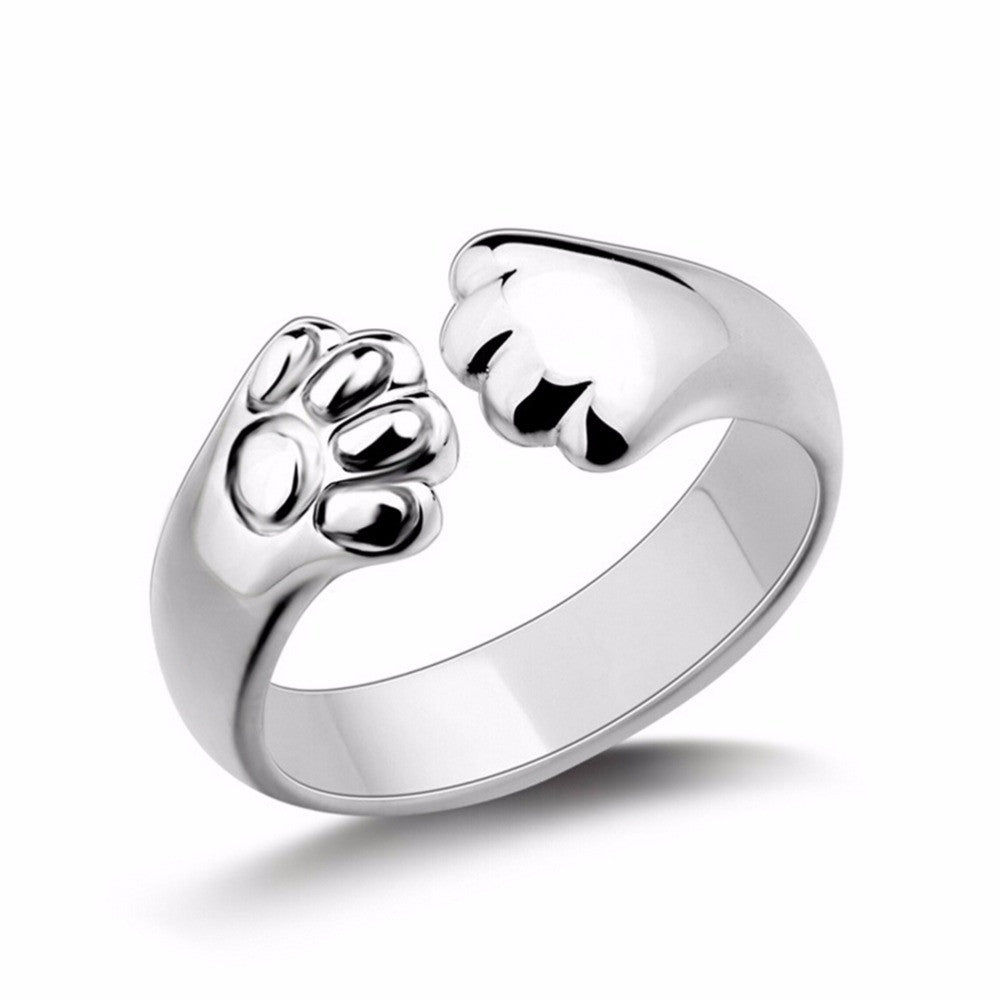 Women Lady Silver Plated Cat Paw Claw Rings Design Open Party Ring Adjustable For Young Girls Jewelry SM6