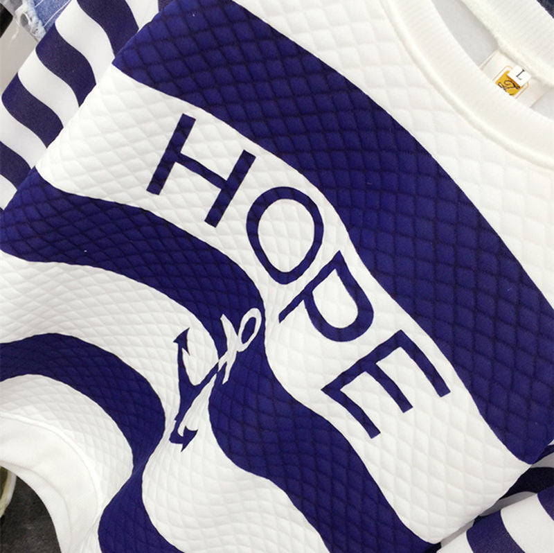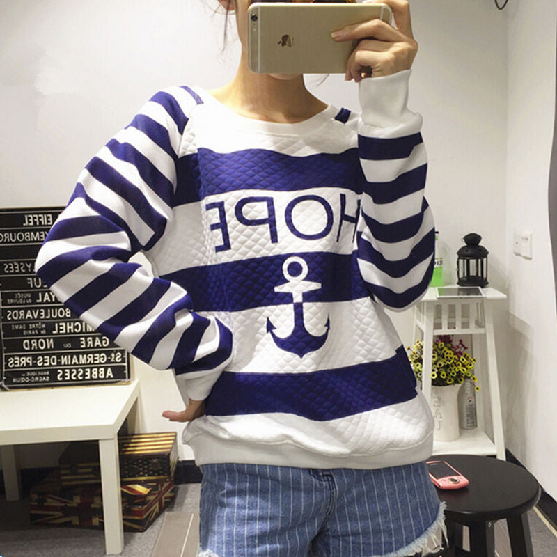 Women Long Sleeve Anchor Printed Hoodies Striped Causal Letter Women Pullover Sweatshirts Tracksuits Suit Tops S-XL SM6