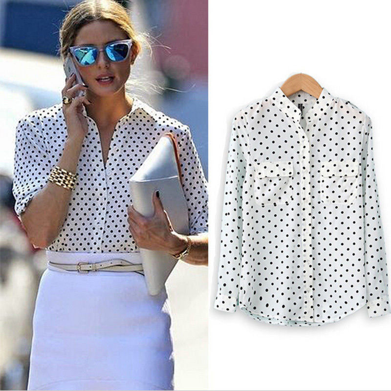 Women's White Blouse Long Sleeve Casual Shirt Polka Dot Print Shirt Plus Size Tops Blusas Femininas SM6